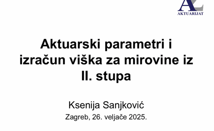 Snimka predavanja Aktuarski parametri i izračun viška mirovine iz II. stupa kojeg je 26. veljače 2025. održala  Ksenija Sanjković (AKTURA AG d.o.o.) dostupna je ovdje.