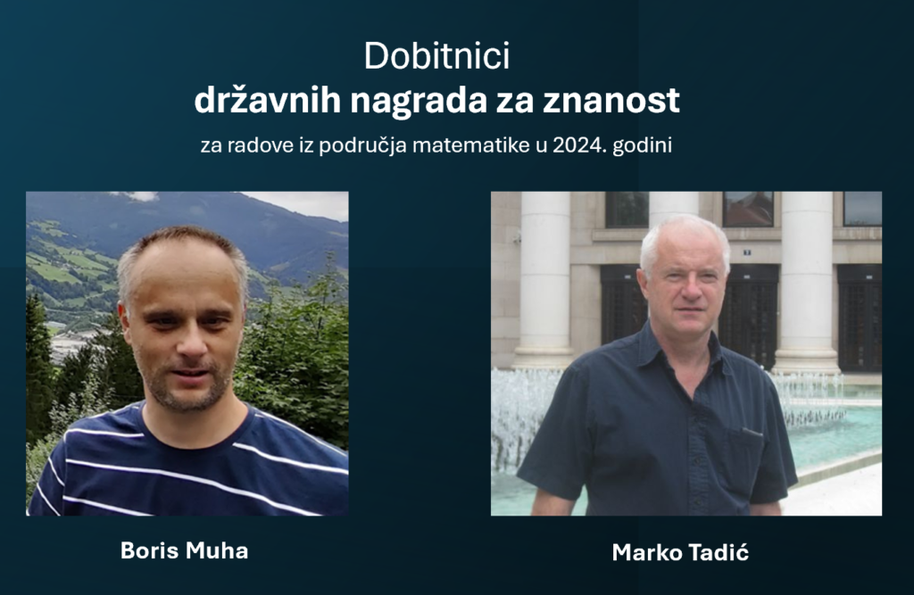 Hrvatsko matematičko društvo upućuje iskrene čestitke akademiku Marku Tadiću i profesoru dr. sc. Borisu Muhi povodom dodjele državnih nagrada za znanost za 2024. godinu, koje potvrđuju njihov izniman doprinos razvoju matematike u Hrvatskoj i svijetu.